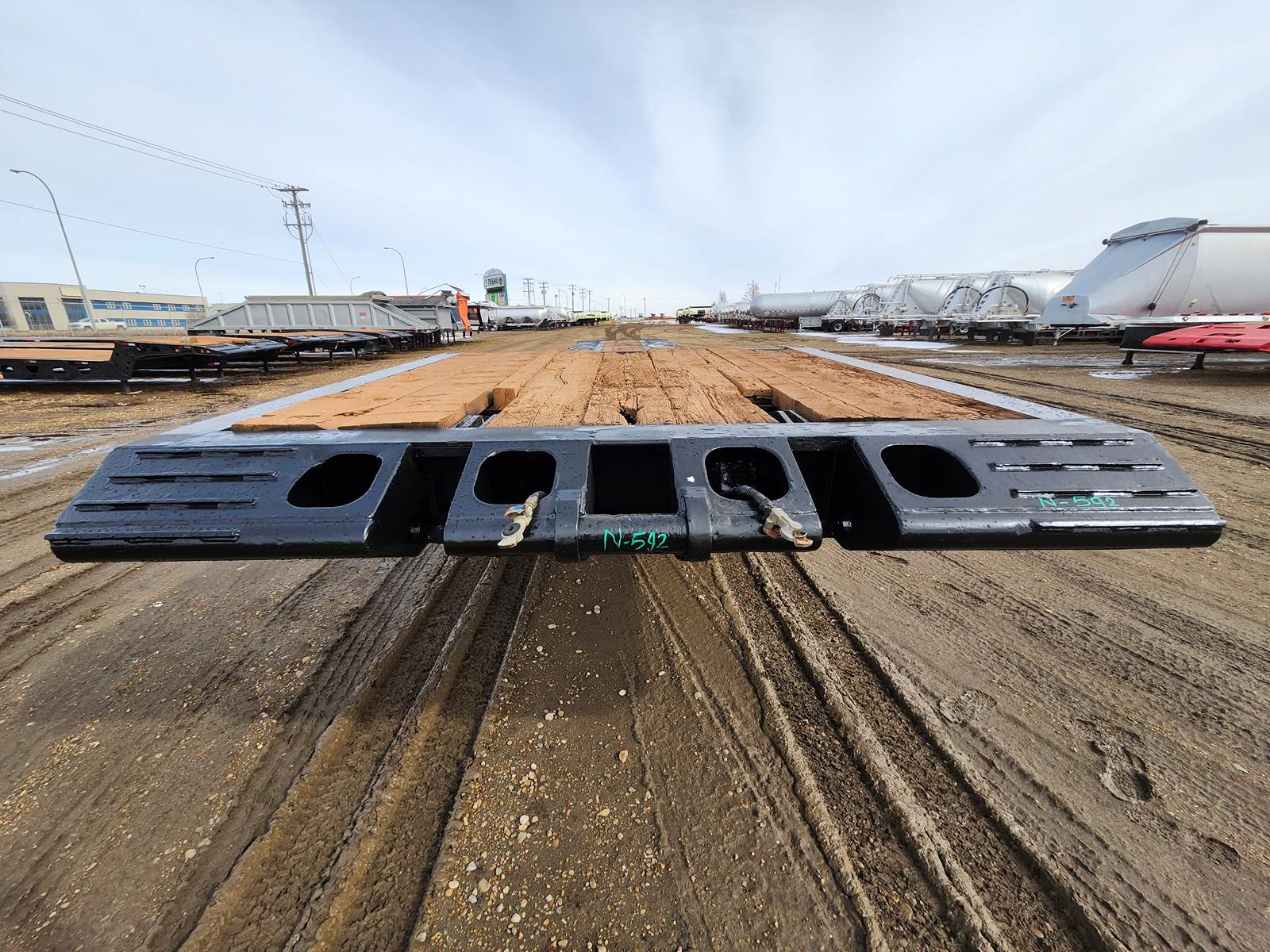 Air Ride Suspension 9 ft Upper Deck 41 ft Main Deck 108 in Overall Deck Width Deck Over Tires Full Width Pickup Throat Fold-Up Dolly Legs Center Roller Tail Roller Aluminum Wheels Length: 51 ft 8 in Width: 9 ft Front Height: 5 ft Back Height: 3 ft 6 in Front to king pin: 2 ft 5 in Drive axle: 8 ft 6 in Front to 1st axle: 38 ft 6 in Axle spread: 5 ft Tire & Wheel : 275/70/R22.5