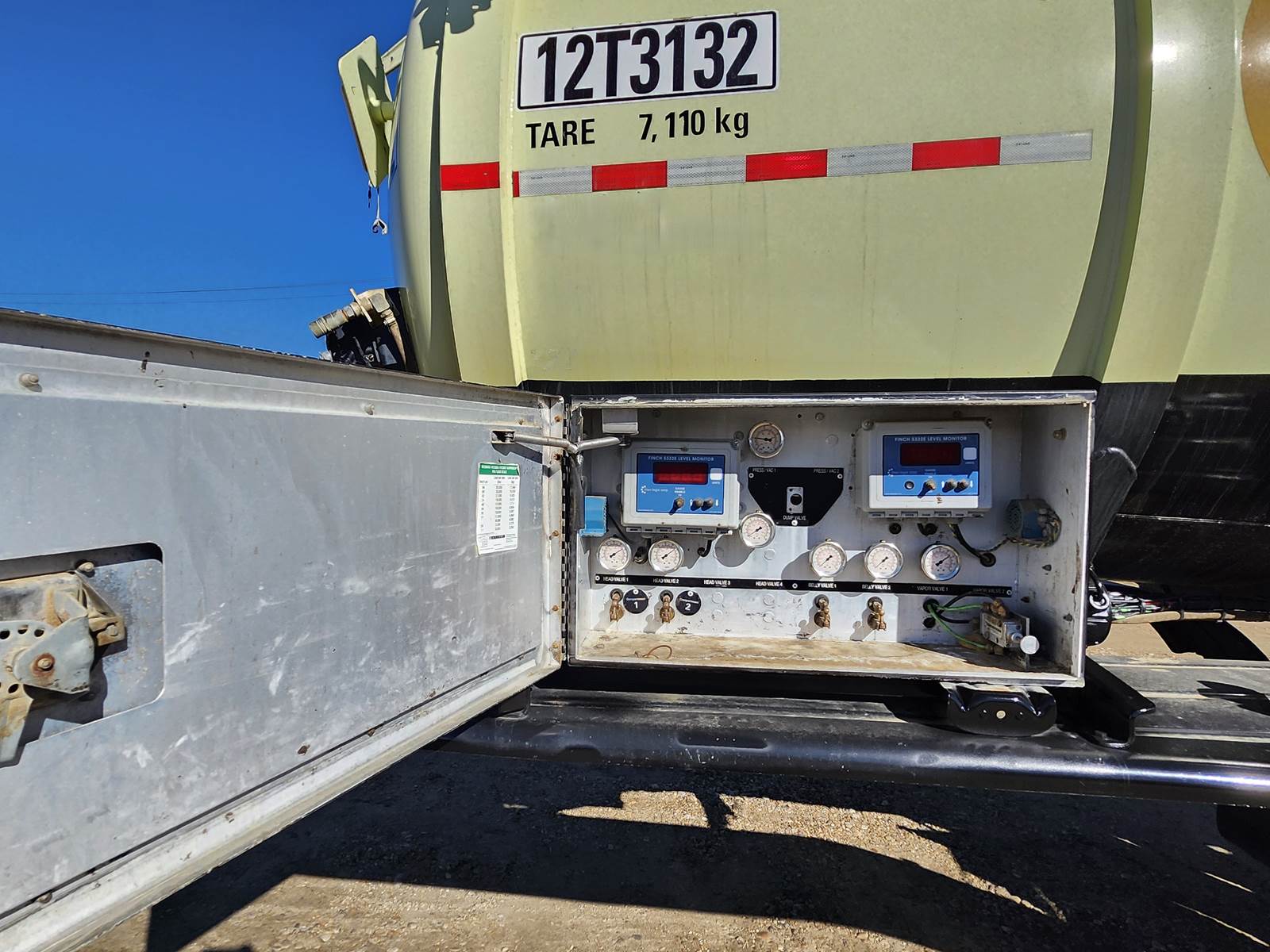DOT / TC 407 tank code 2 Compartments with baffles Two Finch 5332E Level Monitors Air ride suspensions Catwalk with handrails Automatic lube system Front load All Aluminum Wheels GVWR: 38,669 KG (85,250 LBS) Max Weight of lading: 32,091 KG (70,750 LBS)